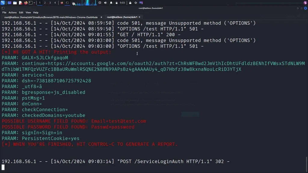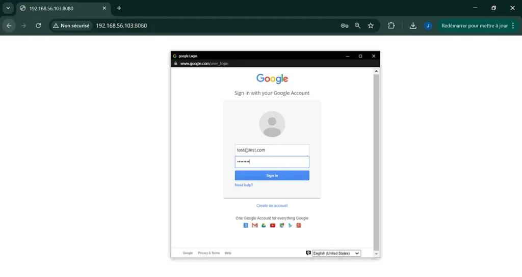 PARTIE 9 : Attendez que la cible saisisse ses identifiants de connexion Google.
